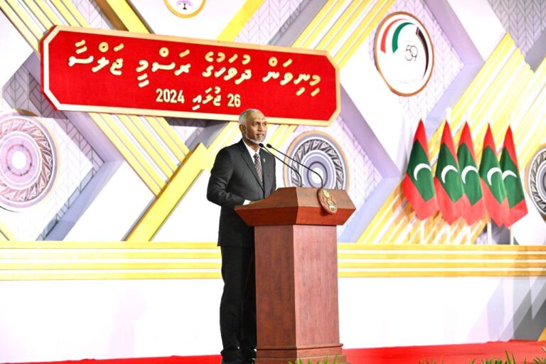 ރައީސުލްޖުމްހޫރިއްޔާ މިހެން ވިދާޅުވީ، ދިވެހިރާއްޖޭގެ މިނިވަންކަމަށް 59 އަހަރު ފުރުމުގެ މުނާސަބަތު ފާހަގަކުރުމުގެ ގޮތުން ބޭއްވި ރަސްމީ ޖަލްސާގައި ވާހަކަފުޅު ދައްކަވަމުންނެވެ.