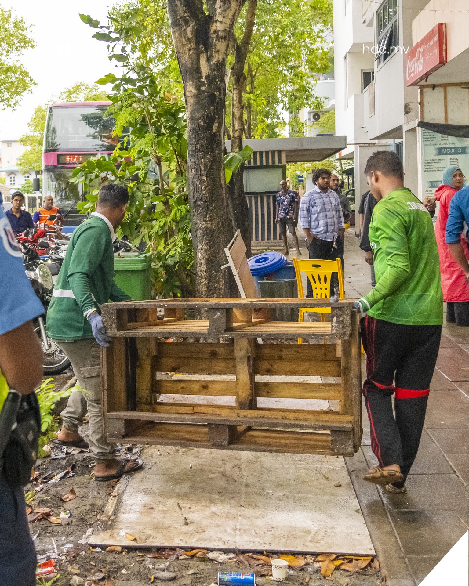 އެޗްޑީސީން މިއަދު ނަގަމުން ދަނީ ކެފޭ ރެސްޓޯރެންޓްތަކުން ދުވާރުމަތީގައި ބަހައްޓާފައި ހުރި ގޮނޑިއާއި މޭޒާއި، އެ ނޫނަސް އާންމުންނަށް ދަތިވާނެހެން ބަހައްޓާފައި ހުރި ތަކެތި ކަމަށް އެޗްޑީސީން ބުނެފައި ވެއެވެ. މިއީ، ހުޅުމާލެއަކީ ހިތްފަސޭހަ ތަނަކަށް ހެދުމަށް ކުރެވޭ މަސައްކަތްތަކުގެ ތެރެއިން އެޗްޑީސީން ކުރަމުން އަންނަ މަސައްކަތެކެވެ. މިމަސައްކަތް ފެށީ ކަމާބެހޭ އިދާރާތަކާ ގުޅިގެންކަމަށް އެޗްޑީސީން ބުންޏެވެ.
