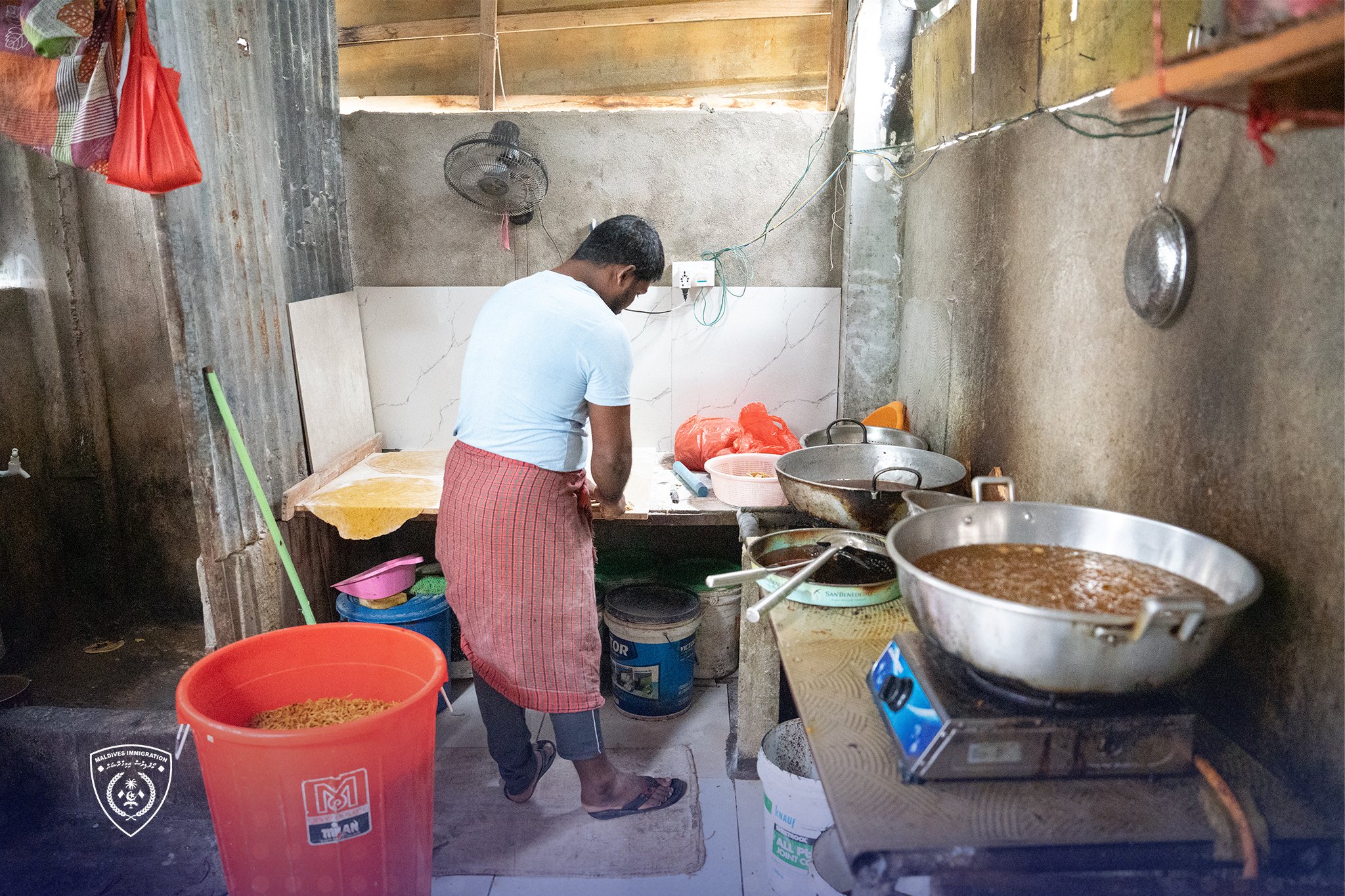އިމިގްރޭޝަނުން ދަނީ ރާއްޖޭގައި ގަވާއިދާ ޚިލާފަށް އުޅޭ ބިދޭސީން ހޯދުމުގެ މަސައްކަތް ކުރަމުންނެވެ. މި މަސައްކަތުގެ ތެރެއިން ހިންގާ އޮޕަރޭޝަނުގައި ކާބޯތަކެތި ތައްޔާރުކޮށް ވިއްކާ ގިނަ ބިދޭސީންތަކެއް އަތުލައިގަނެފައި ވެއެވެ. އެމީހުން އެތަކެތި ތައްޔާރުކުރާ ތަންތަނަކީ އާންމު ސާފު ތާހިރު މިންގަނޑަށް ނުފެތޭ މުޑުދާރު ތަންތަންކަމަށްވުމާއެކު އިމިގްރޭޝަނުން ދަނީ މި ފަދަ މައްސަލަތައް ހަމާގުޅުން ހުރި އިދާރާތަކުގެ ސަމާލުކަމަށް ގެންނަމުންނެވެ.