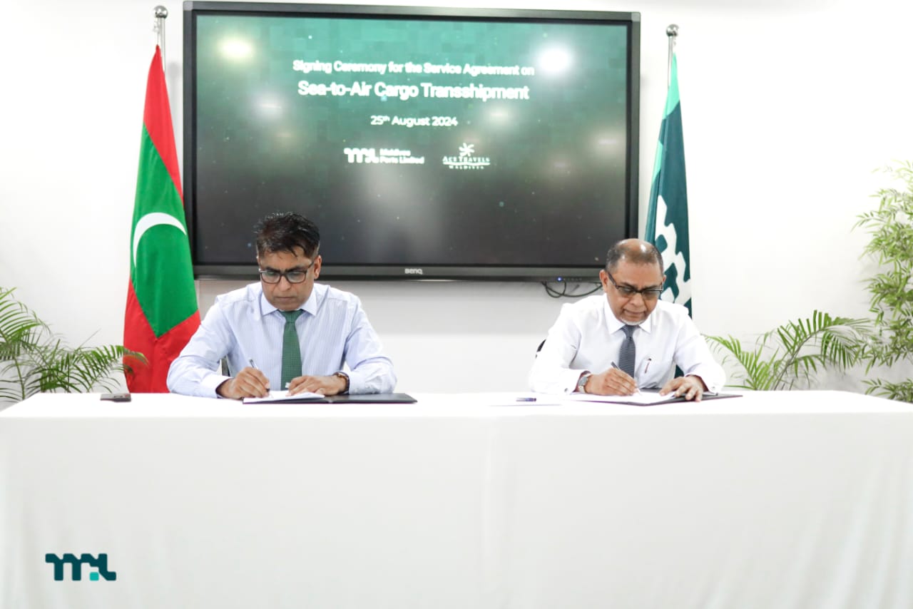މޯލްޑިވްސް ޕޯޓްސް ލިމިޓަޑް (އެމް.ޕީ.އެލް) އާއި ގަތަރު އެއާވޭސްގެ ޖެނެރަލް ސަރވިސް އޭޖެންޓް އޭސް ޓްރެވަލްސް މޯލްޑިވްސްއާ ދެމެދު ސީ-ޓު-އެއަރ ޓްރާންސްޝިޕްމަންޓް ކާގޯ ޚިދުމަތް ފޯރުކޮށްދިނުމާ ގުޅޭ ސަރވިސް އެގްރީމަންޓެއްގައި މިއަދު ސޮއިކޮށްފި އެވެ.