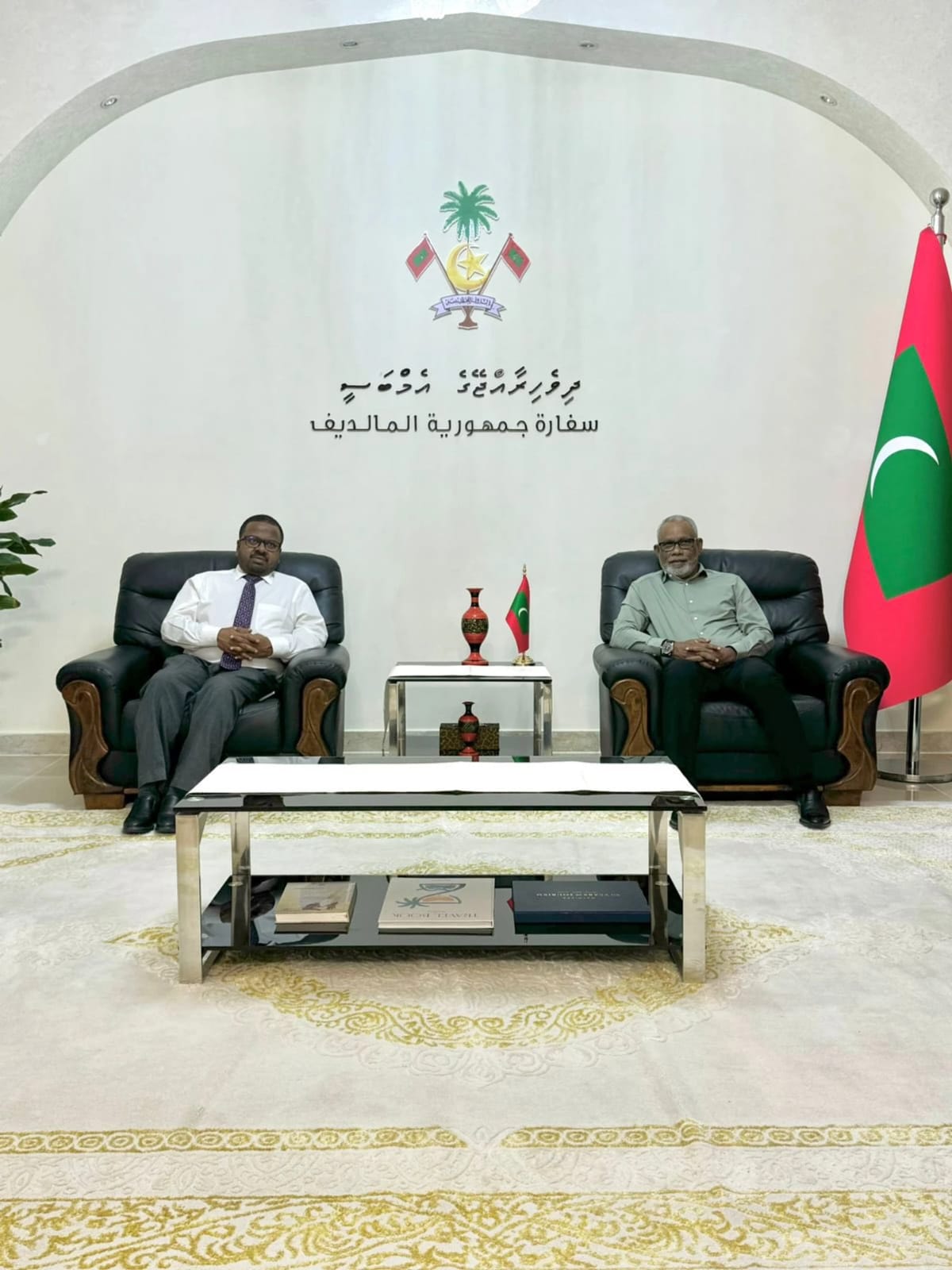 މަޖިލީހުގެ ރައީސް އަބްދުއްރަހިމް އަބްދުﷲ އެމްބަސީއަށް ކުރެއްވި މި ޒިޔާރަތުގައި މެހެމާނުންގެ ފޮތުގައި ސޮއި ކުރެއްވުމުގެ އިތުރުން، އެމްބަސީގައި މަސައްކަތް ކުރައްވާ މުވައްޒަފުންނާ ވެސް ވަނީ ބައްދަލުކުރެއްވި އެވެ.