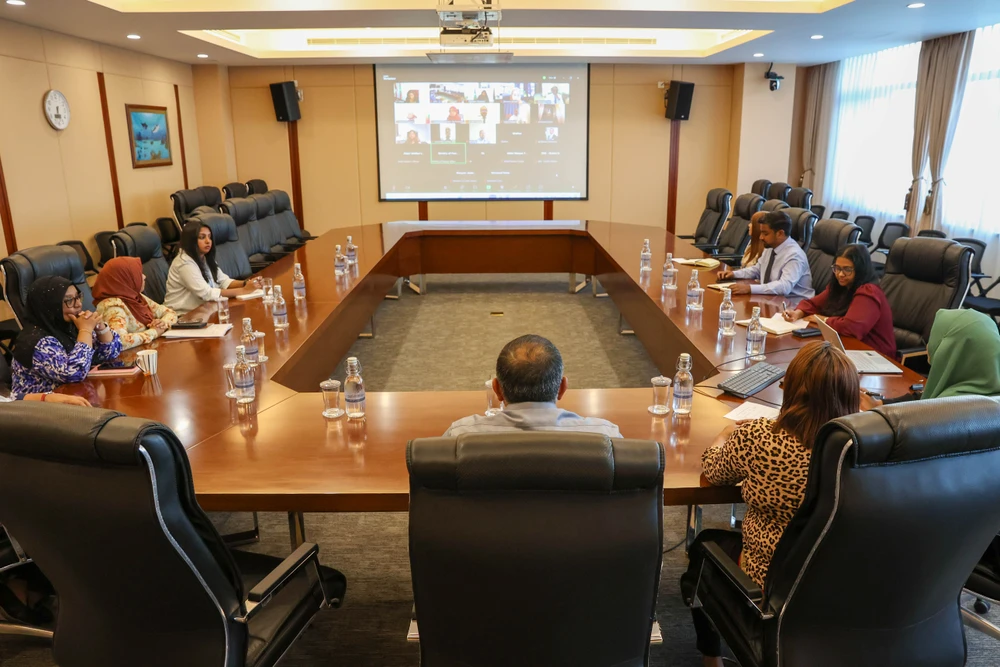 ވަޒީރު މިފަދައިން އެދިވަޑައިގެންނެވީ، ބޭރު ޤައުމުތަކުގައި ހުރި ދިވެހި މިޝަންތަކުގެ ސަފީރުންނާއި އަދި ހެޑްސް އޮފް މިޝަންއާއެކު އިއްޔެ ބޭއްވެވި ބައްދަލުވުމެއްގަ އެވެ.