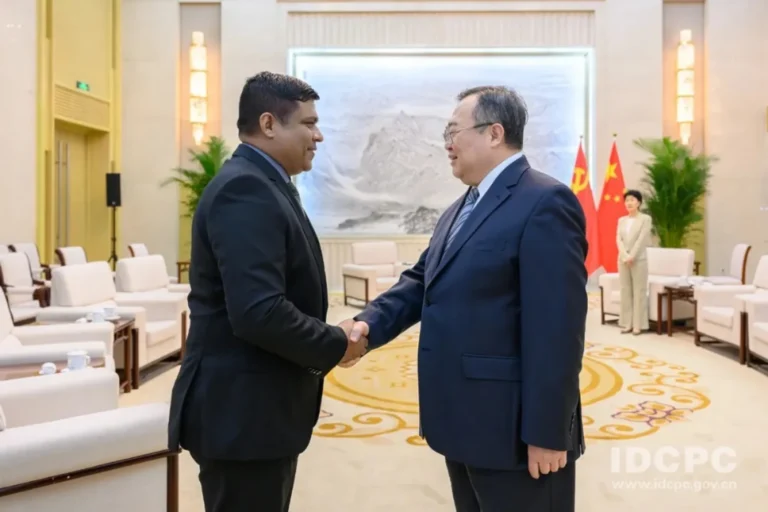 ވެރިކަންކުރާ ޕީޕަލްސް ނެޝަނަލް ކޮންގްރެސް(ޕީއެންސީ) އިން ޗައިނާއަށް ވަޑައިގެންނެވި ވަފުދުގެ އިސްވެރިޔާ ޓްރާންސްޕޯޓު އެންޑް ސިވިލް އޭވިއޭޝަން މިނިސްޓަރ މުޙައްމަދު އަމީން ކޮމިއުނިސްޓް ޕާޓީ އޮފް ޗައިނާ (ސީޕީސީ)ގެ އިންޓަނޭޝަނަލް ލިއޭޒަން ޑިޕާޓޫމެންޓުގެ މިނިސްޓަރ ލިއު ޖިއަންޗޯއާ ބައްދަލުކުރައްވައިފި އެވެ.