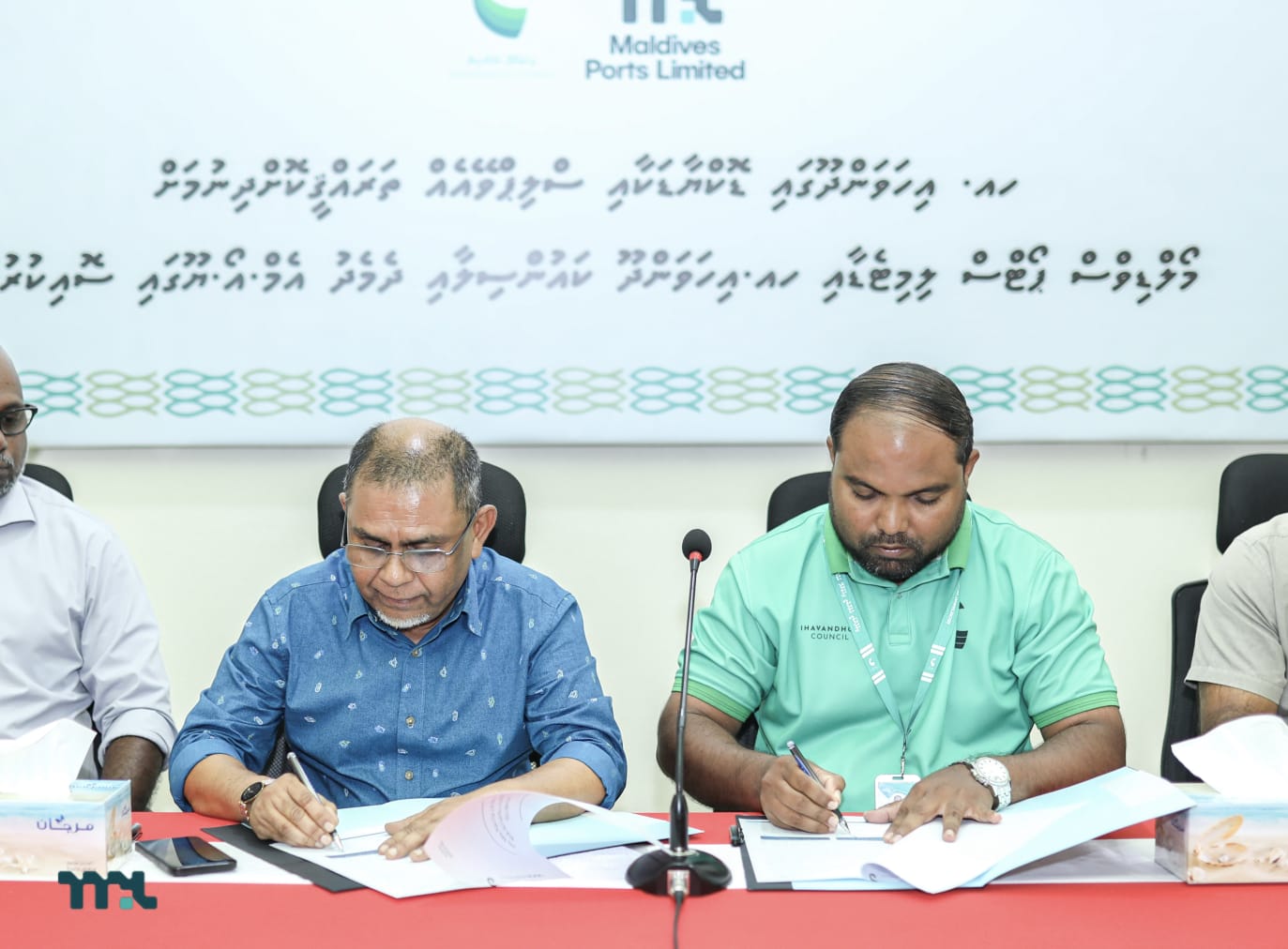 ހއ. އިހަވަންދޫގައި ޑޮކްޔާޑަކާއި ސްލިޕްވޭއެއް ތަރައްޤީކުރުމަށް މޯލްޑިވްސް ޕޯޓްސް ލިމިޓެޑް (އެމްޕީއެލް) އާއި އިހަވަންދޫ ކައުންސިލާއި ދެމެދު މިއަދު އެއްބަސްވުމެއްގައި ސޮއި ކޮށްފިއެވެ.