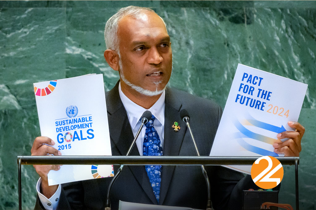އދ. ގެ އާންމު މަޖިލީހުގެ 79 ވަނަ ސެޝަންގައި ރޭ ތަޤުރީރު ކުރައްވަމުން ރައީސް ޑރ. މުއިއްޒު ވިދާޅުވީ 2040 އަނަ އަހަރު އަންނަ އިރު ދިވެހިރާއްޖެ ތަރައްޤީގެ އެންމެ މަތީ ހަރުފަތްތަކުގައިވާ ޤައުމެއްގެ ގޮތުގައި ފެނިގެންދިޔުމަކީ އެ މަނިކުފާނު އެދިވަޑައިގަންނަވާ ގޮތް ކަމަށެވެ. އަދި މި ތަސައްވުރަށް ވާސިލުވުމަށްޓަކައި އުފެއްދުންތެރިކަން އިތުރުކޮށް، ޑިޖިޓަލް ޓްރާންސްފޮމޭޝަންގެ އިތުރުން ޤައުމުގު ގުދުތަތީ ރީތިކަމާއި ކަނޑުފަޅުގެ މުއްސަނދިކަމުގެ ބޭނުން ހިފަން ޖެހޭ ކަމަށް ރައީސް ވިދާޅުވިއެވެ.