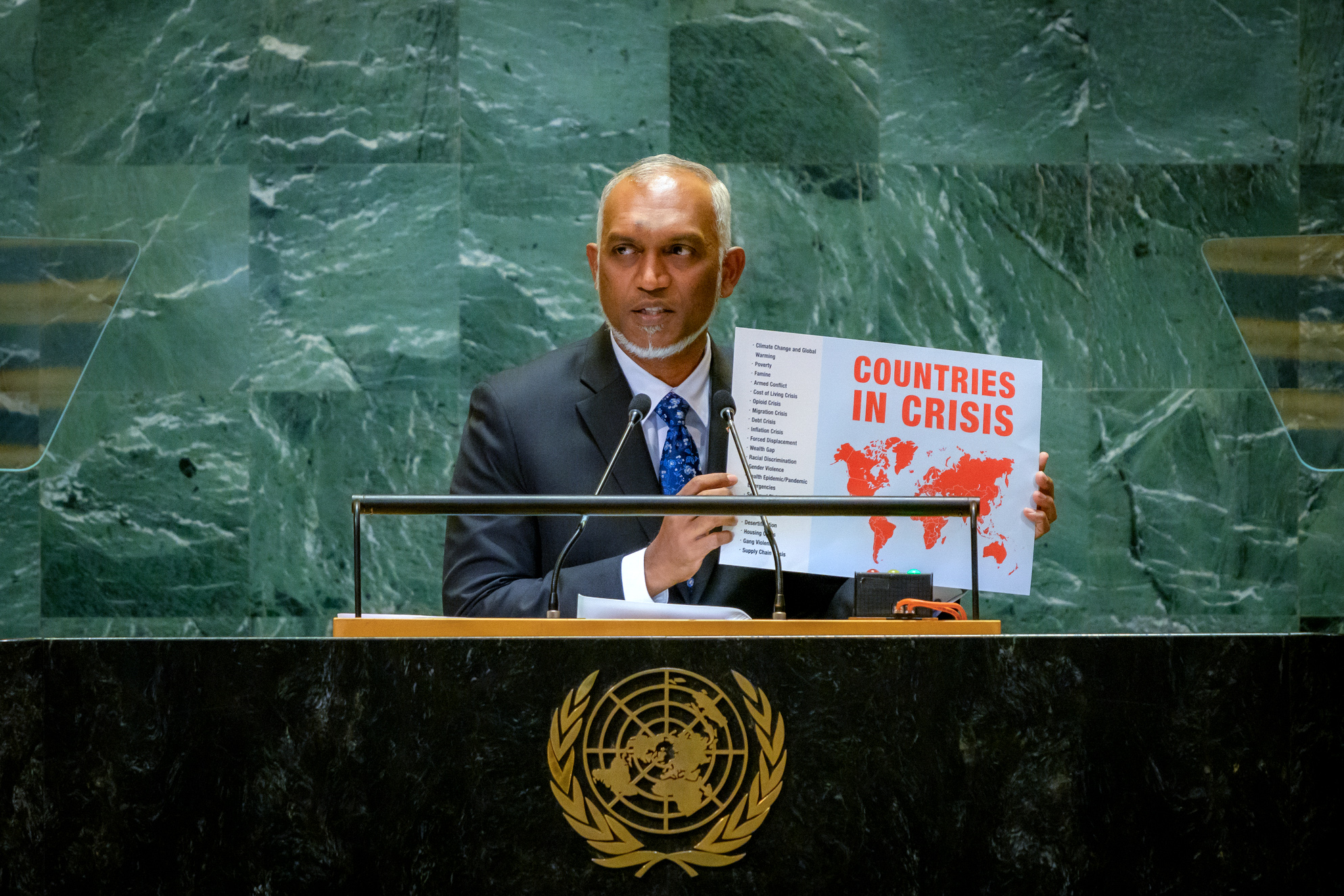 އެމަނިކުފާނު މިފަދައިން ގޮވައިލެއްވީ އެކުވެރި ދައުލަތްތަކުގެ އާންމު މަޖިލީހުގެ 79 ވަނަ ސެޝަންގައި ރޭ ތަޤްރީރުކުރައްވަމުންނެވެ.