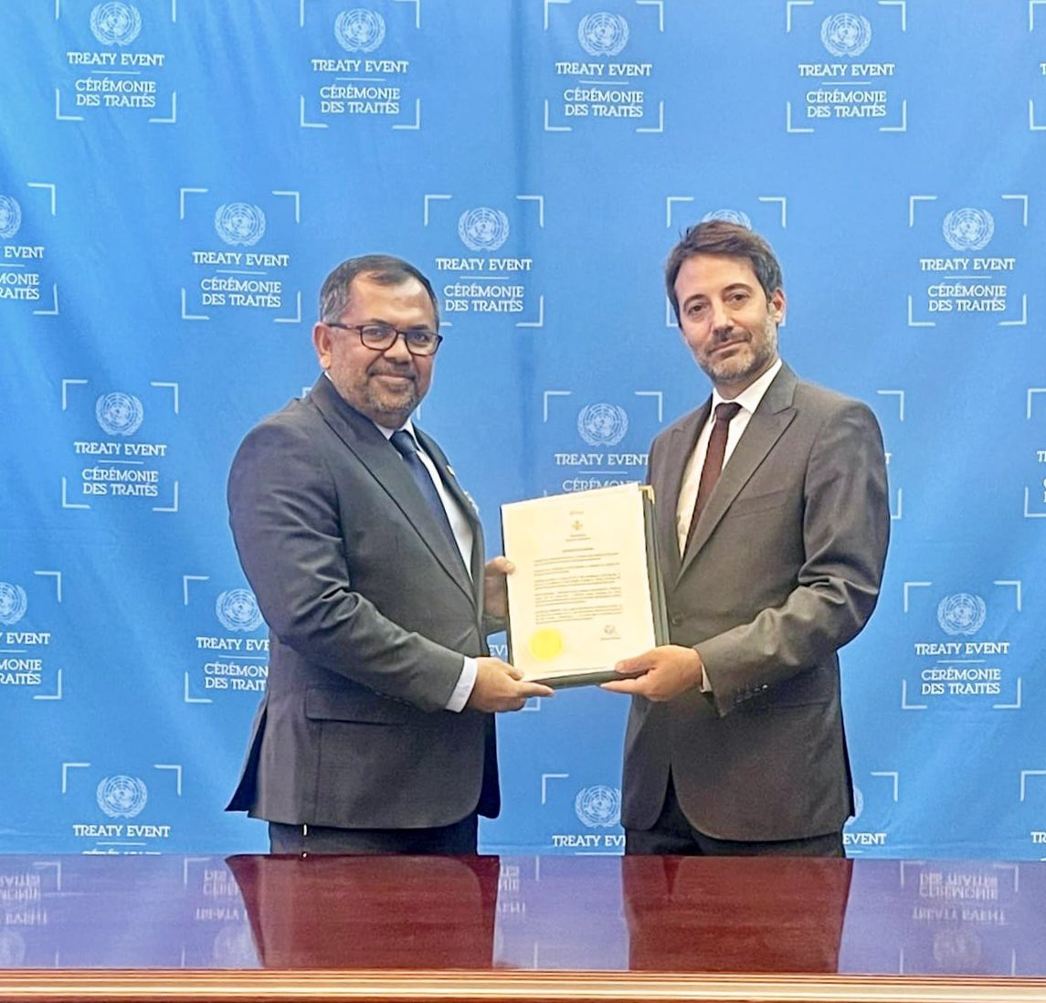 ފޮރިން މިނިސްޓްރީން ބުނީ، މި މުއާހަދާ ތަސްދީޤުކުރުމަށް ބޭނުންވާ ”އިންސްޓްރޫމަންޓް އޮފް ރެޓިފިކޭޝަން“ އާއި ”މިނަމާޓާ ކޮންވެންޝަން އޮން މަރކިއުރީ“ ދިވެހިރާއްޖެއިން ތަސްދީޤުކުރުމަށް ބޭނުންވާ ”އިންސްޓްރޫމަންޓް އޮފް އެކްސެޝަން“ އ.ދ. އަށް އިއްޔެ ހުށަހަޅުއްވާފައިވާކަމަށެވެ. އ.ދ. ގެ އާންމު މަޖިލީހުގެ 79 ވަނަ ސެޝަންގެ ހަވާސާގައި ބޭއްވި ހާއްސަ ރަސްމިއްޔާތެއްގައި މި ތަކެތި އދ އާ ހަވާލުކޮށްދެއްވީ، މިނިސްޓަރ އޮފް ފޮރިން އެފެއާޒް، މޫސާ ޒަމީރު، އެެވެ. މި ރަސްމިއްޔާތަށް ފަހު، ދިވެހިރާއްޖެ އަކީ ބީބީއެންޖޭ މުޢާހަދާ ތަޞްދީޤުކުރި 9 ވަނަ ޤައުމު އަދި މިނަމާޓާ ކޮންވެންޝަން އޮން މަރކިއުރީ ތަސްދީޤުކުރި 150 ވަނަ ޤައުމުކަމަށް ފޮރިން މިނިސްޓްރީން ބުނެފައި ވެއެވެ.