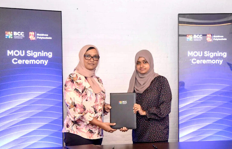 އާރޓްސް އެންޑް ކަލްޗަރ ސެންޓަރެއް ޤާއިމުކުރުމަށް އަމާޒުކޮށް މޯލްޑިވިސް ޕޮލިޓެކްނިކާއި ބިޒްނަސް ސެންޓަރ ކޯޕަރޭޝަން (ބީސީސީ) އިން އެއްބަސްވުމެއްގައި ސޮއިކޮށްފި އެވެ.