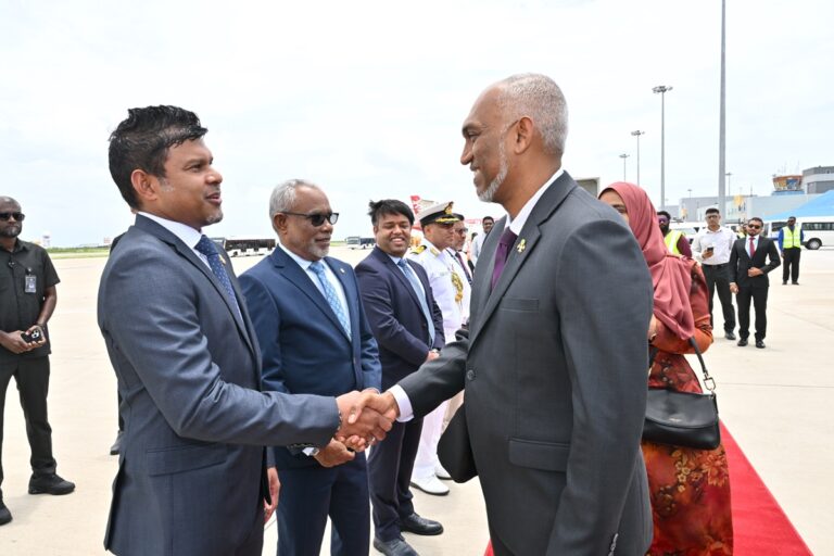 ރައީސުލްޖުމްހޫރިއްޔާ ޑރ. މުޙައްމަދު މުޢިއްޒު އާއި އެމަނިކުފާނުގެ އަނބިކަނބަލުން މެޑަމް ސާޖިދާ މުޙައްމަދު، އިންޑިއާއަށް ކުރައްވާ ފުރަމާނަ ދަތުރުފުޅެއްގައި މިއަދު ފުރާވަޑައިގެންފިއެވެ.