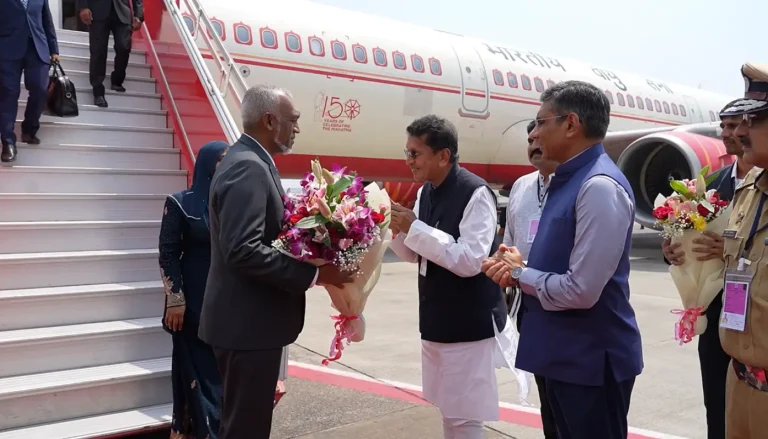 އިންޑިއާއަށް ކުރައްވާ ފުރަމާނަ ދަތުރުފުޅުގެ ތެރެއިން ރައީސުލްޖުމްހޫރިއްޔާ ޑރ. މުޙައްމަދު މުޢިއްޒު އިންޑިއާގެ މުމްބައި އަށް ވަޑައިގެންފިއެވެ. ރައީސްގެ މި ދަތުރުފުޅުގައި ރާއްޖޭގައި ހުރި އިންވެސްޓުމެންޓުގެ ފުރުސަތުތަކާ ބެހޭ މައުލޫމާތު ހިއްސާކޮށް، ވިޔަފާރީގެ ރޮނގުން ދެ ޤައުމުގެ ގުޅުން އިތުރަށް ބަދަހި ކުރުމަށް ބާއްވާ ބިޒްނަސް ފޯރަމްގައި ބައިވެރިވެވަޑައިގަތުމަށް ވެސް ވަނީ ހަމަޖެހިފައެވެ.
