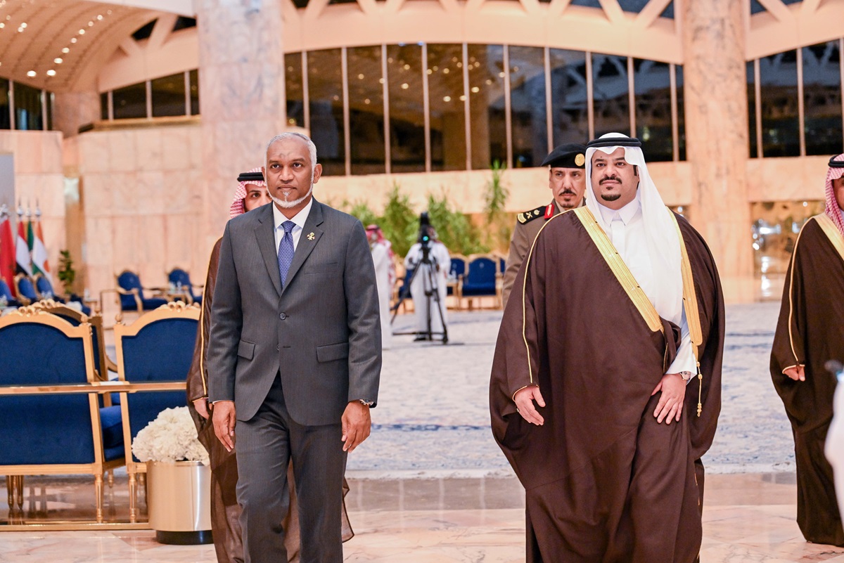 ޖޮއިންޓް ޢަރަބް-އިސްލާމިކް ސަމިޓުގައި ބައިވެރިވެވަޑައިގަތުމަށް ރައީސް މުޢިއްޒު ސައުދީ ޢަރަބިއްޔާގެ ރިޔާޛަށް މިހާރު ވަޑައިގެންފިއެވެ. އެމަނިކުފާނަށް ކިންގް ޚާލިދް އިންޓަރނޭޝަނަލް އެއަރޕޯޓުން މަރުޙަބާ ވިދާޅުވީ، ރިޔާޛު ސަރަޙައްދުގެ ޑެޕިއުޓީ ގަވަރނަރ، ހިޒް ރޯޔަލް ހައިނަސް ޕްރިންސް މުޙައްމަދު ބިން ޢަބްދުއްރަޙްމާން ބިން ޢަބްދުލްޢަޒީޒެވެ.
