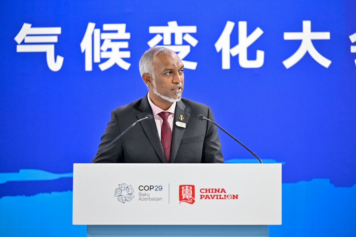 އަޒަރުބައިޖާނުގައި މިއަދު ހެނދުނު ކުރިއަށްދިޔަ މި ހަރަކާތުގައި ރައީސުލްޖުމްހޫރިއްޔާ ޑޮކްޓަރ މުޙައްމަދު މުޢިއްޒު ދެއްކެވި ވާހަކަފުޅުގައި، ޗައިނާގެ ރައީސް ޝީ ޖިންޕިންގ އާއި ޗައިނާ ސަރުކާރުން ފެހި އަދި ކާބަން މަދު ތަރައްޤީއަށް ކުރައްވަމުން ގެންދަވާ މަސައްކަތްޕުޅުތައް ފާހަގަކުރެއްވިއެވެ. އަދި ރާއްޖޭގެ ތިމާވެށީގެ މަސައްކަތްތަކަށް އެފަރާތްތަކުގެ އެއްބާރުލެއްވުން އަބަދުވެސް ލިބިވަޑައިގަންނަވާކަން އެމަނިކުފާނު ފާހަގަކުރެއްވިއެވެ.