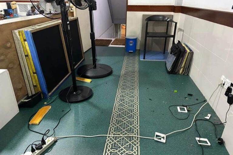 ފުރްޤާން މިސްކިތުގައި ހުރި މުސްޙަފުތަކެއް އުކާލައި، އެ ބައެއް ގެއްލުންތައްދީ މިސްކިތުގެ ހުރުމަތް ކަނޑާލައިފިއެވެ.