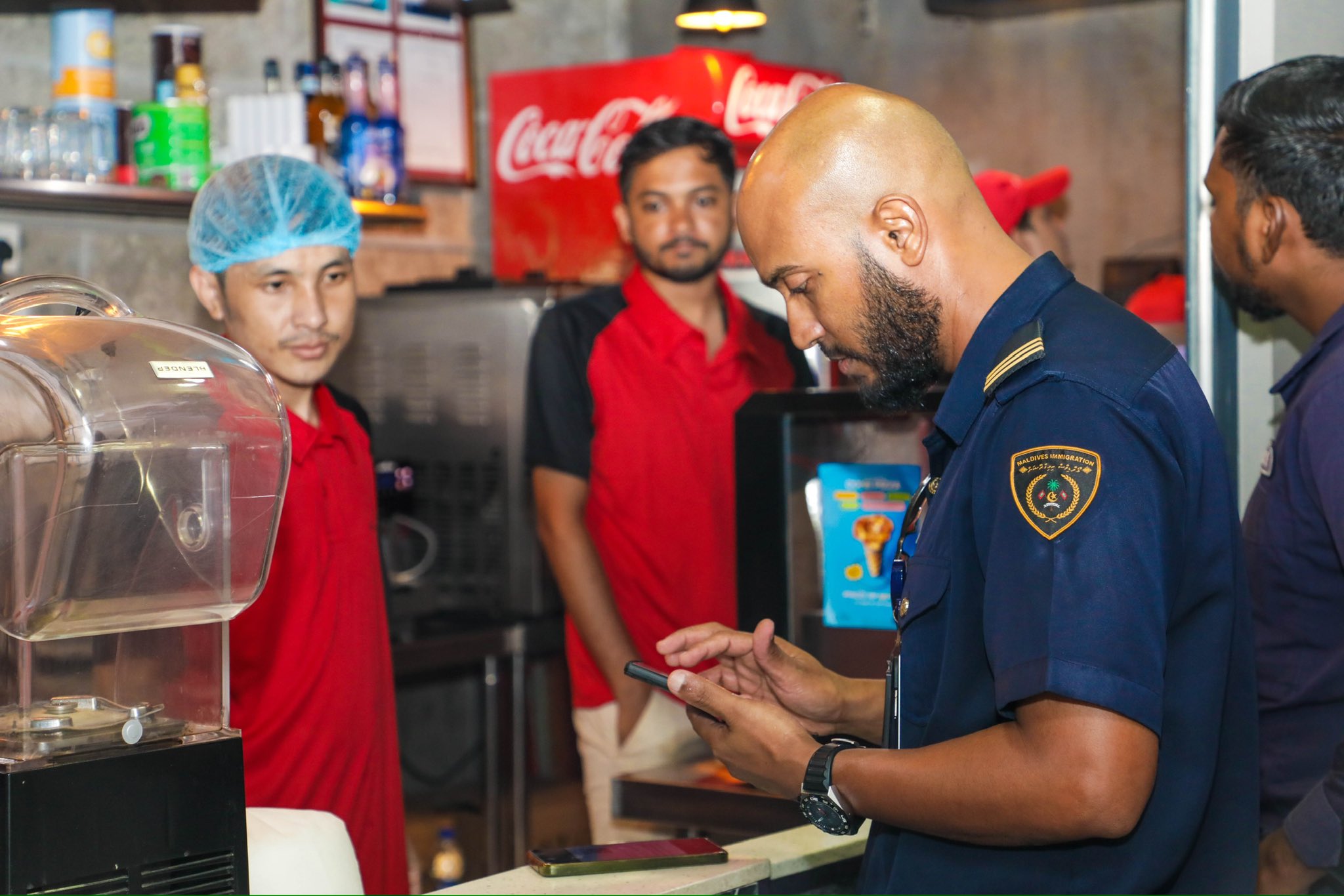 އެގޮތުން 08 ފިހާރައާއި، 04 ކެފޭ/ރެސްޓޯރަންޓު/ބޭކަރީ އަދި 01 ސެލޫން ބަލައި ފާސްކޮށްފައިވާ ކަމަށާއި މީގެތެރެއިން ދެ ތަނެއްގައި ގަވާއިދާ ހިލާފަށް މަސައްކަތް ކުރަމުންދިއަ 03 މީހަކު އިމިގްރޭޝަންގެ ބެލުމުގެ ދަށަށް ގެނެވިފައިވާ ކަމަށް ވެސް އިމިގްރޭޝަނުން ބުނެފައިވެއެވެ.