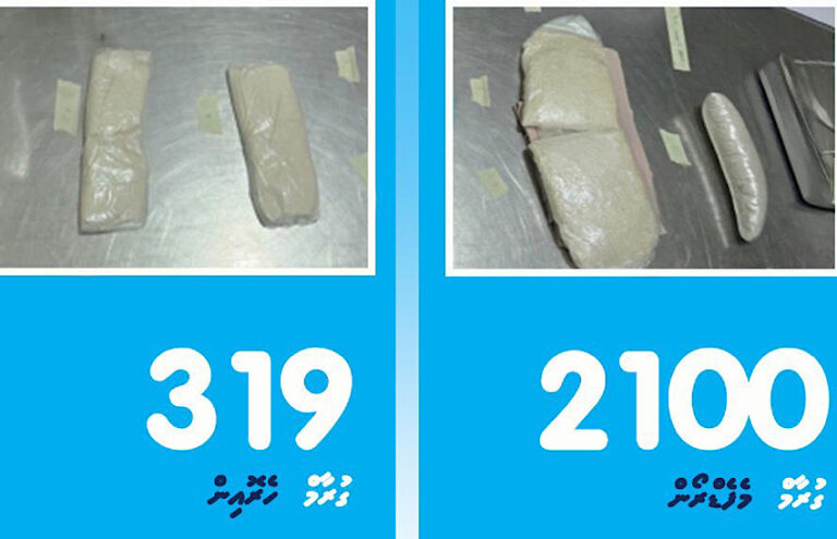 ވައިގެ މަގުން ރާއްޖެއަށް އެތެރެކުރަން އުޅުނު 2.4 ކިލޯގެ މި މަސްތުވާތަކެތީގެ ތެރޭގައި ހިމެނެނީ 0.32 ކިލޯގްރާމް ހިރޮއިން އާއި 2.1 ކިލޯގްރާމް މެފެޑްރޯން އެވެ.