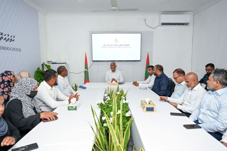 ރައީސް ޑރ. މުޙައްމަދު މުޢިއްޒު، ގއ. މާމެންދޫ ކައުންސިލާއި އަންހެނުންގެ ތަރައްޤީއަށް މަސައްކަތްކުރާ ކޮމިޓީގެ މެންބަރުންނާ ބައްދަލުކުރައްވައި، ރަށަށް އެންމެ މުހިންމު ކަންކަމާ ބެހޭގޮތުން މަޝްވަރާކުރައްވައިފިއެވެ.