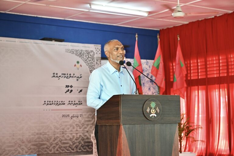 ”އަމާޒަކީ މި ފެށިގެން މިދާ އަހަރު ނިމެންވާއިރަށް، 2025 ވަނަ އަހަރުގެ ނިޔަލަށްދާއިރުގައި މުޅި ރާއްޖޭގައި ވެސް ކޮންމެ ރަށެއްގައި ވެސް، އެ ރަށެއްގައި އެންމެ އެކަށީގެންވާ ފެންވަރުގައި ޕޮލިސް ހިދުމަތް ދެވޭނެ އަމިއްލަ ތަނެއް. ތަނެއް ކުއްޔަށް ހިފައިގެނެއް ނޫން. އަމިއްލަ އިމާރާތެއް، އެކަމަށް އެންމެ އެކަށީގެންވާ ފެންވަރެއްގައި ގާއިމުކުރުން،“ރައީސް މުޢިއްޒު ވިދާޅުވިއެވެ.