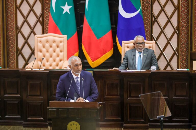 ރައްޔިތުންގެ މަޖިލީހުގައި މިއަދު އިއްވެވި ރިޔާސީ ބަޔާނުގައި ރައީސް ޑރ. މުޙައްމަދު މުޢިއްޒު ވިދާޅުވީ ޣައްޒާއިން ފަލަސްތީނުގެ ރައްޔިތުން ނެރުމަށް އެއްވެސް ފަރާތަކުން ކުރާ އެއްވެސް މަސައްކަތަކަށް ދިވެހިރާއްޖެއިން ދުވަހަކުވެސް ތާއީދެއް ނުކުރާނެ ކަމަށެވެ.