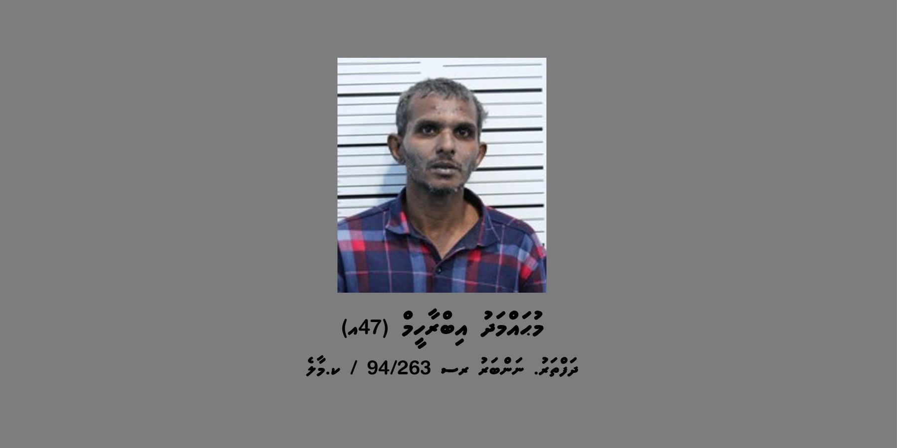 ފުލުހުން ހޯދަމުންދަނީ މުޙައްމަދު އިބްރާހީމް، ދަފްތަރު ނަންބަރު ރސ94/263 / މާލެ (47އ) އެވެ.