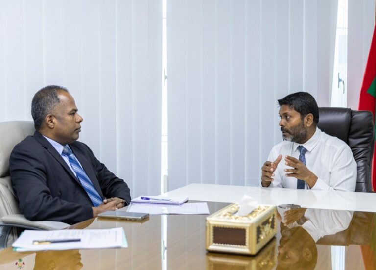 ކުޅިވަރާބެހޭ ވުޒާރާގައި ކުރިއަށްދިޔަ މި ބައްދަލުވުމުގައި ކުޅިވަރާއި ހަށިހެޔޮކަމާ ބެހޭ ވަޒީރު ޢަބްދުﷲ ރާފިޢު، ސްރީ ލަންކާއިން ދިވެހިރާއްޖެއަށް ކަނޑައަޅުއްވާފައި ހުންނަވާ ސަފީރާ އެކްސެލެންސީ ޑީ. އަމާނުﷲ ވަނީ ދެ ޤައުމުގެ ކުޅިވަރު ދާއިރާ ކުރިއެރުވުމަށް އެއްބާރުލުން ދެވިދާނެ ގޮތްތަކާ ބެހޭގޮތުން ފުޅާ ދާއިރާއެއްގައި މަޝްވަރާކުރައްވާފައެވެ.