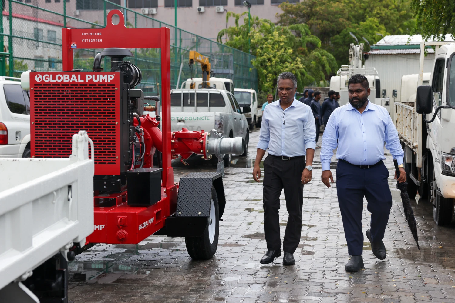 މޭޔަރ ޢާޒިމް ވިދާޅުވީ، ކައުންސިލުން ކުރިން ގެނައި ދެ ޕަމްޕު މިހާރު ވަނީ އެމްއެންޑީއެފްގެ ފަޔަރ އެންޑް ރެސްކިއުއާ ހަވާލުކޮށްފައި ކަމަށެވެ. މި ޕަމްޕުތައް މައިގަނޑު ގޮތެއްގައި ބޭނުންކުރަމުން އަންނަނީ މާލޭގައި އެންމެ ބޮޑަށް ފެންބޮޑުވާ މާފަންނު ސަރަހައްދުގައި ކަމަށާއި، މިއީ މީގެ ކުރިން މާލޭގައި ބޭނުންކުރަމުން އައި ޕަމްޕުތަކަށްވުރެ 10 ގުނަ ބާރުމިނުގައި ފެން ހިންދޭ ޕަމްޕުތަކެއް ކަމަށް ޢާޒިމް ވިދާޅުވިއެވެ.