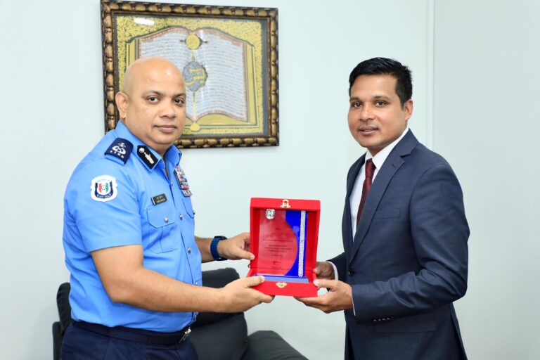 އައިއެފްސީއޭސީސީގެ ސްޓްރެޓެޖީ އެންޑް ޑިވެލޮޕްމަންޓްގެ ކޯޑިނޭޓަރ، ރިލްވާން ޝަރީފް، ޑެޕިއުޓީ ކޮމިޝަނަރ އޮފް ޕޮލިސް އިސްމާޢީލް ނަވީނާއެކު ޝަހީދު ޙުސައިން އާދަމް ބިލްޑިންގގައި ބޭއްވުނު ބައްދަލުވުމެއްގައި ނަވީން ވަނީ އައިއެފްސީއޭސީސީއިން ދިވެހި ފުލުހުންގެ ހިދުމަތަށް ދެއްވާފައިވާ އެހީތެރިކަމާއި އެއްބާރުލެއްވުމަށް ޝުކުރު އަދާކުރެއްވުމުގެ ގޮތުން ހަނދާނީ ފިލައެއް ރިޟްވާންއަށް އަރުވާފައެވެ.