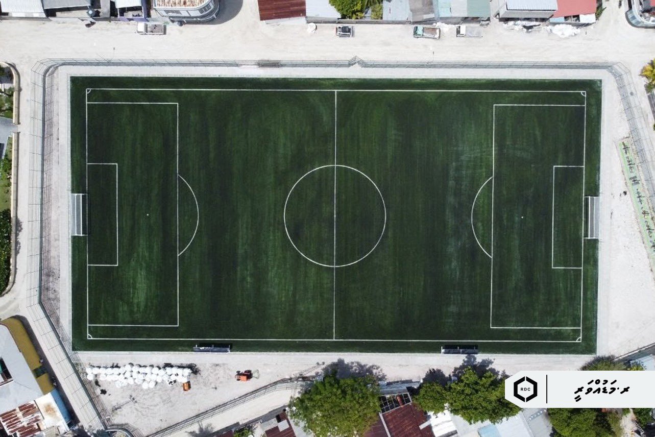 ރ. މަޑުއްވަރީ ފުޓުބޯޅަ ދަނޑުގައި ޓާފް އެޅުމުގެ މަސައްކަތް ރޯޑް ޑިވެލޮޕްމަންޓް ކޯޕަރޭޝަން (އާރްޑީސީ) އިން ނިންމާލައިފިއެވެ.