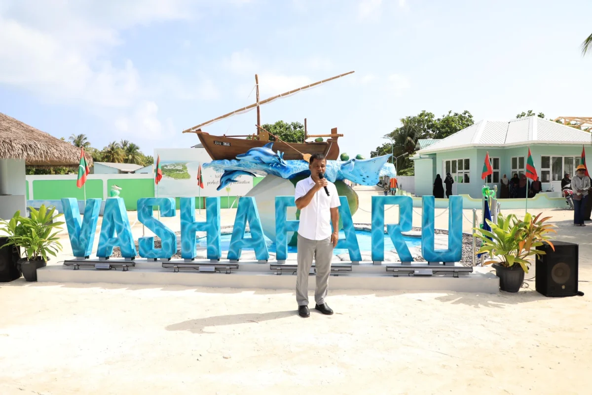 ވަށަފަރު ރަށުރަމްޒު މޮނިއުމަންޓު ހުޅުވައިދެއްވައި ވާހަކަފުޅުދައްކަވަމުން ހެލްތު މިނިސްޓަރު ޢަބްދުﷲ ނާޒިމް ވިދާޅުވީ މިފަދަ މަސައްކަތްތަކުން ރަމްޒުކޮށްދެނީ ރަށުގެ ރައްޔިތުންނާއި ކައުންސިލުން ރަށުގެ ތަރައްޤީއަށް ގެންގުޅޭ ވިސްނުން ކަމަށެވެ.