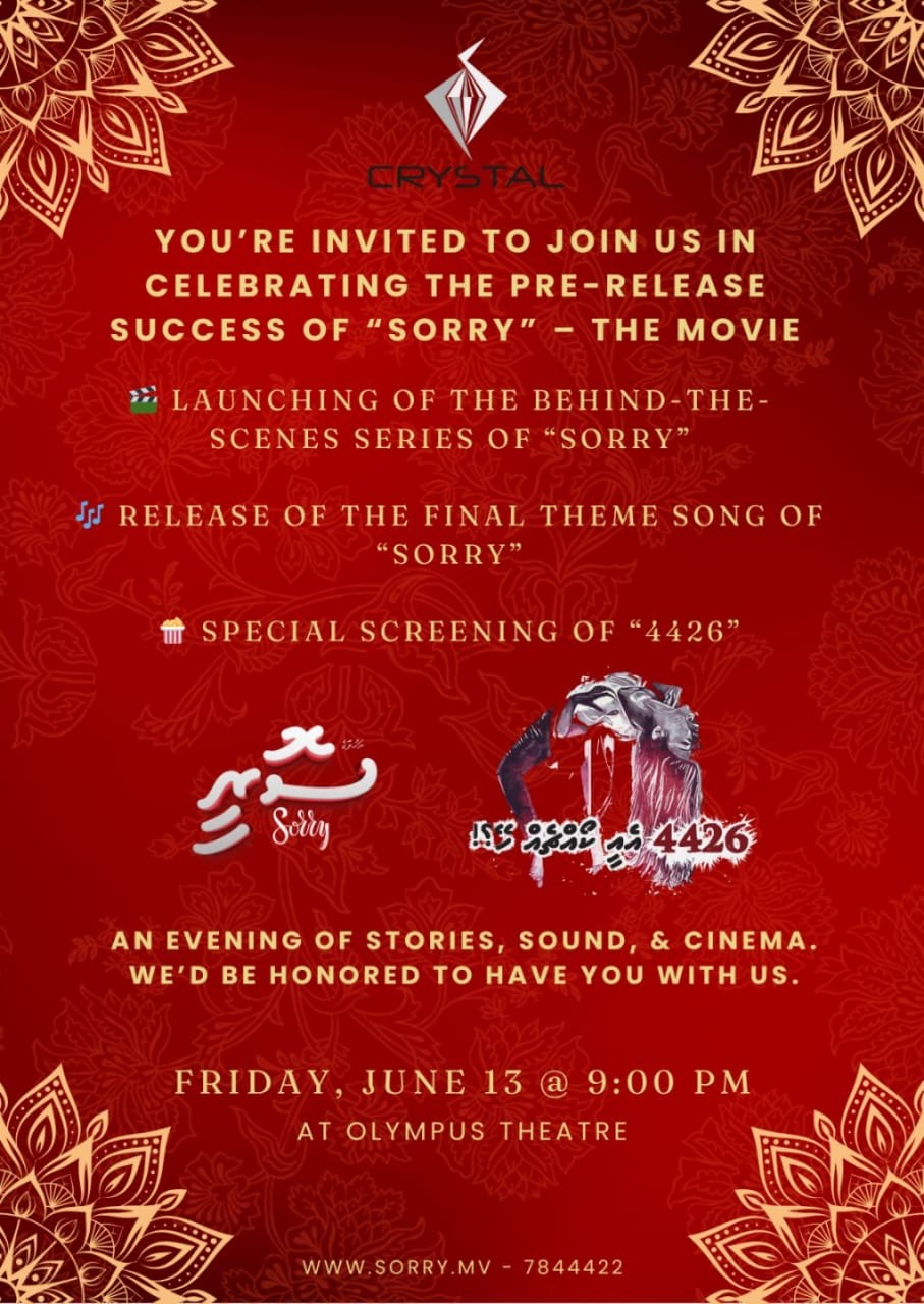 ދިވެހި ފިލްމު ”ސޮރީ“ ގެ ކާމިޔާބީ ފާހަގަކުރުމަށް އޮލިމްޕަސް ތިއޭޓަރުގައި ހާއްސަ އިވެންޓެއް ބޭއްވުމަށް ތައްޔާރުވެއްޖެއެވެ.