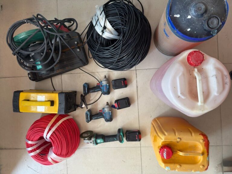 ހޯދާފައިވާ ތަކެތީގެ ތެރޭގައި ހިމެނެނީ 1000 މީޓަރު ޑީސީ ކޭބަލް، ކަޓްއޯފްއަކާއި ވެލްޑިންގ ޕްލާންޓަކާއި ޕެޓްރޯލް ހަންތަކަކާއި އޭންގަލް ގްރޭންޑަރެއްގެ އިތުރުން ބެޓްރީ ރެންޗުތަކެކެވެ.
