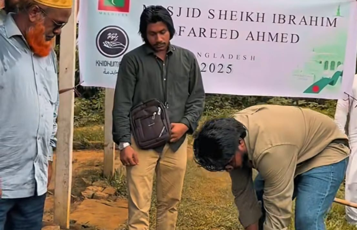 ރާއްޖޭގެ މަޝްހޫރު ދީނީ ޢިލްމުވެރިޔާ އަލްމަރްހޫމް އައްޝައިޚް އިބްރާހިމް ފަރީދު އަހްމަދުގެ ހަނދާނުގައި ބަންގްލަދޭޝްގައި ބިނާކުރާ މިސްކިތުގެ ބިންގާ އިއްޔެ އަޅައިފިއެވެ.