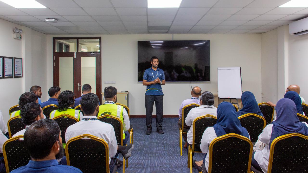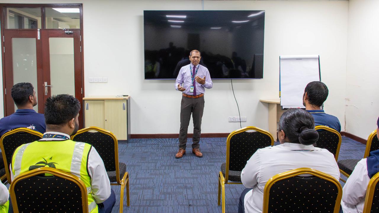 އެމް.އޭ.ސީ.އެލްގެ ލާނިން އެންޑް ޑިވެލޮޕްމަންޓް ސެކްޝަންގެ ޖެނެރަލް މެނޭޖަރު މިސްބާހު އަހުމަދު ވިދާޅުވީ، ޖާގައިގެ ގޮތުން ތަނަވަސް އަދި ފުރިހަމަ ޓަރމިނަލެއް ހުޅުވާއިރު އެތަނުން ދެވޭ ޚިދުމަތަކީވެސް މަތީ ފަންތީގެ ޚިދުމަތްތަކަށް ވުން މުހިންމު ކަމަށެވެ. އެގޮތުން މި ކަސްޓަމާ ސާވިސް ޓްރައިނިން ޕްރޮގްރާމަކީ އެމް.އޭ.ސީ.އެލްގެ ކޮންމެ މުވައްޒަފަކީ ޚިދުމަތް ދިނުމުގައި ހިތްހެޔޮކަމާއެކު ފަސިންޖަރުންނަށް މެހެމާންދާރީ ފޯރުކޮށްދޭ ބައެއްކަން ކަށަވަރު ކުރުމަށް ހިންގާ ތަމްރީނުތަކެއް ކަމުގައި މިސްބާޙް ވިދާޅުވިއެވެ.