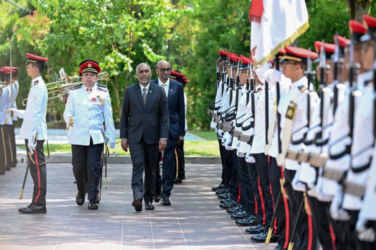ރައީސުލްޖުމްހޫރިއްޔާ ޑރ. މުހައްމަދު މުޢިއްޒުގެ ދެކަނބަލުން ސިންގަޕޫރަށް މިހާރު ކުރައްވަމުން ގެންދަވާ ފުރަމާނަ ދަތުރުފުޅުގައި އެ ގައުމުގެ ރައީސާއި ބޮޑުވަޒީރު ރަސްމީކޮށް މިއަދު މަރުހަބާ ދަންނަވައިފިއެވެ.