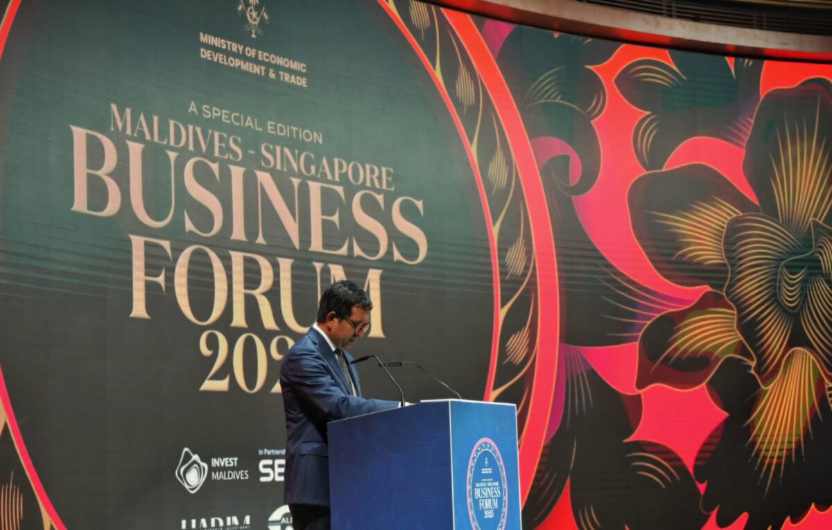 މިނިސްޓަރ ސައީދު މިހެން ވިދާޅުވީ ރޭ ސިންގަޕޫރުގައި ފެށި ރާއްޖޭގެ ބިޒްނަސް ފޯރަމްގައި ވާހަކަފުޅު ދައްކަވަމުންނެވެ.