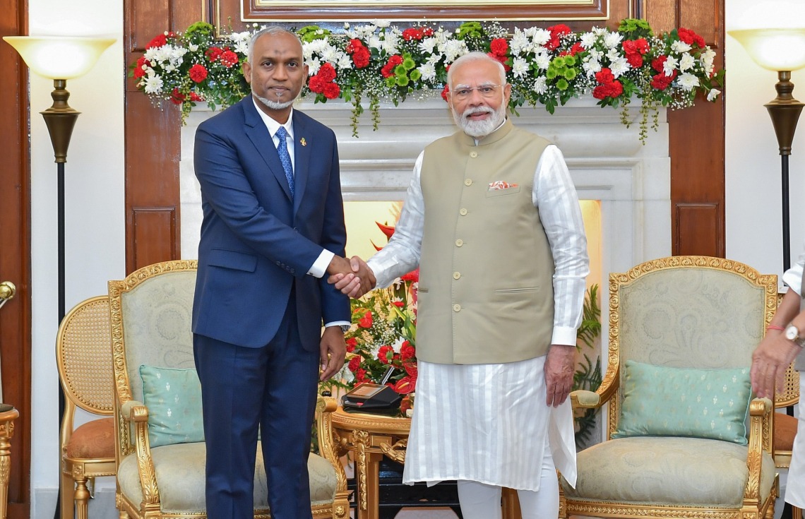 މިއަދު ހެނދުނު 9:15 އެހާކަންހާއިރު މޯދީ ރާއްޖެ ވަޑައިގަތުމުން އެއާޕޯޓުން އެ މަނިކުފާނަށް މަރުހަބާ ދެންނެވީ ރައީސުލްޖުމްހޫރިއްޔާ ޑރ. މުހައްމަދު މުޢިއްޒު އެވެ.