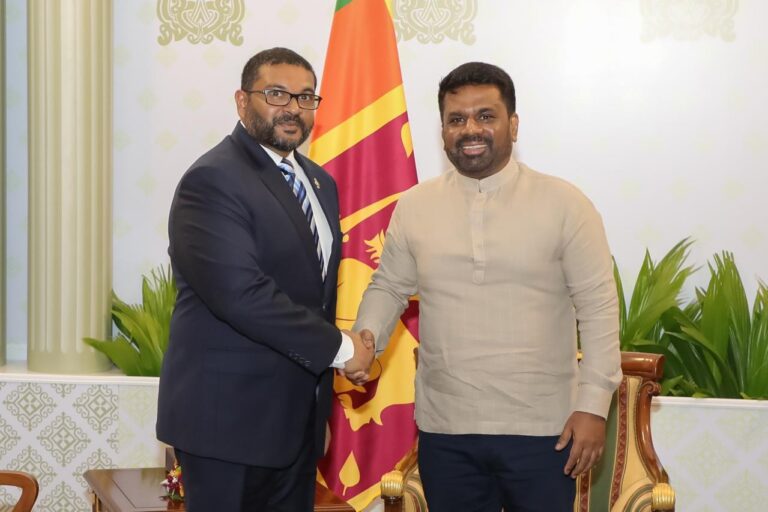 ޑިފެންސް މިނިސްޓަރު މުޙައްމަދު ޣައްސާން މައުމޫން، ސްރީލަންކާގެ ރައީސް އަނޫރާ ކުމާރާ ޑިސަނާޔަކެގެ އަރިހަށް އިޙްތިރާމްގެ ޒިޔާރަތެއް ކުރައްވައިފިއެވެ.