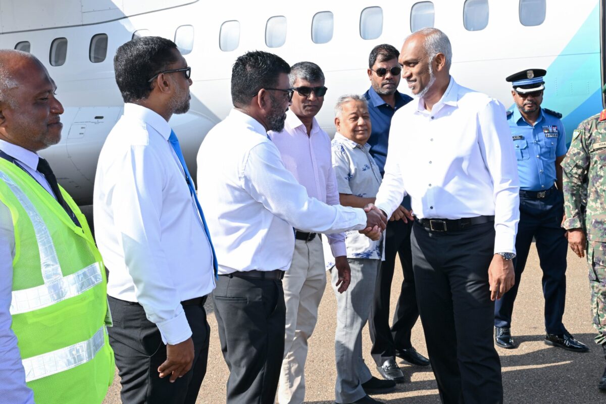 ބ. އަތޮޅުގައި މީހުން ދިރިއުޅޭ ރަށްތަކަށް ޒިޔާރަތްކުރެއްވުމަށް ރައީސުލްޖުމްހޫރިއްޔާ ޑރ. މުޙައްމަދު މުޢިއްޒު މިއަދު ހެނދުނު ފެއްޓއވި ދަތުރުފުޅުގެ ތެރެއިން އެ އަތޮޅު ކަމަދޫއަށް ވަޑައިގެންފިއެވެ.