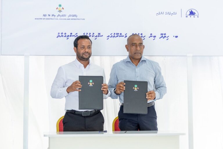 ހިތާދޫ ބިންހިއްކުމުގެ މަޝްރޫޢު އެމްޓީސީސީއާ ހަވާލުކުރުމުގެ އެއްބަސްވުމުގައި ކޮންސްޓްރަކްޝަން މިނިސްޓްރީގެ ފަރާތުން ސޮއިކުރެއްވީ މިނިސްޓަރު ޑރ. ޢަބްދުﷲ މުއްޠަލިބެވެ. އަދި އެމްޓީސީސީގެ ފަރާތުން ސޮއިކުރެއްވީ އެކުންފުނީގެ މެނޭޖިންގ ޑިރެކްޓަރ އަޙްމަދު ސައުދީއެވެ.