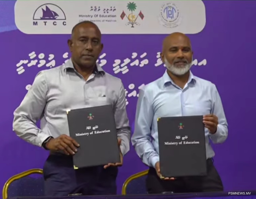 މި މަޝްރޫޢުގެ އެއްބަސްވުމުގައި އެޑިޔުކޭޝަން މިނިސްޓްރީގެ ފަރާތުން ސޮއި ކުރެއްވީ މިނިސްޓަރު ޑރ.އިސްމާޢީލު ޝަފީީޢުއެވެ. އެމްޓީސީސީގެ ފަރާތުން ސޮއިކުރެއްވީ އެކުންފުނީގެ މެނޭޖިން ޑިރެކްޓަރ އަޙުމަދު ސަޢުދީއެވެ.