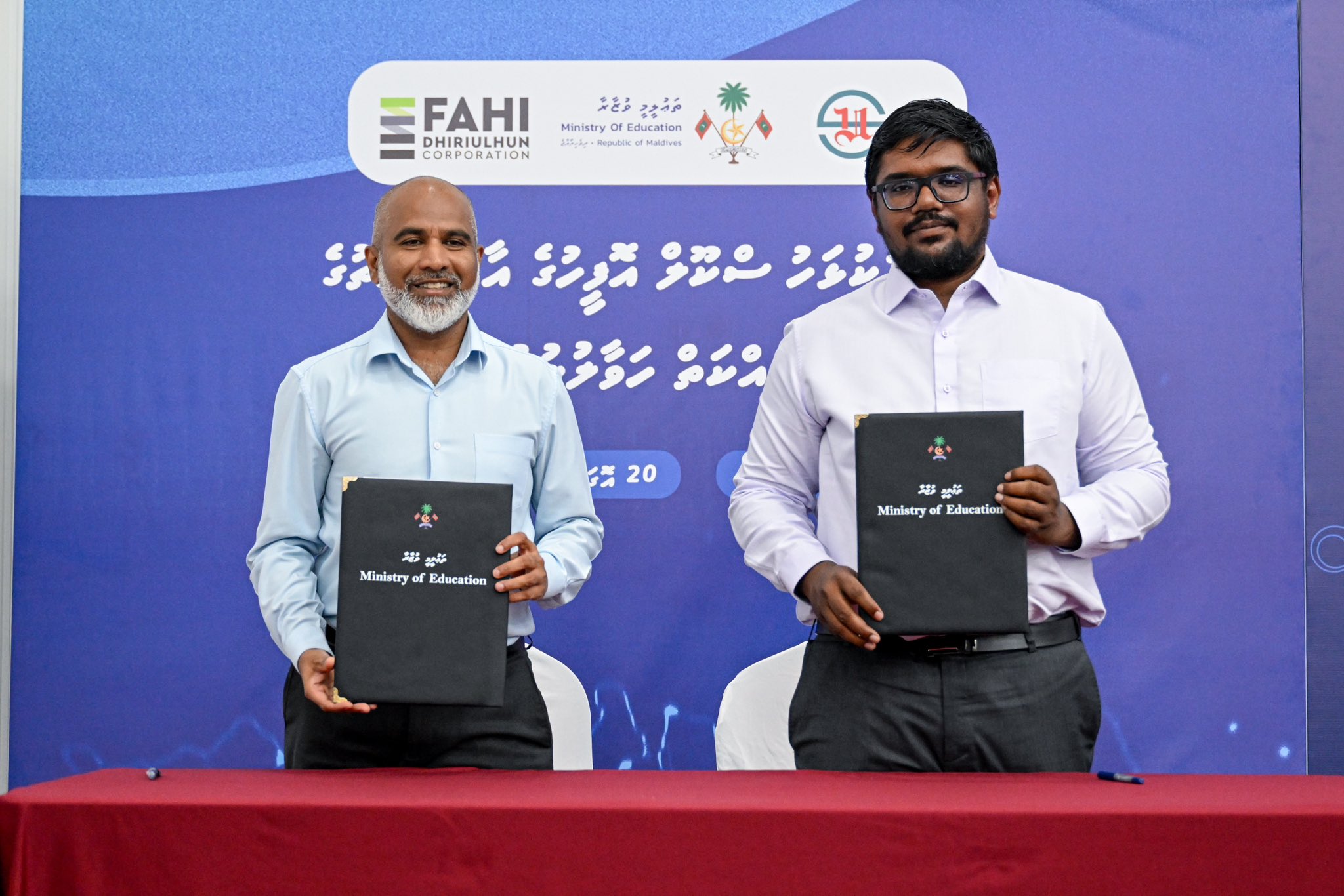 އުކުޅަހު ސްކޫލުގައި އޮފީސް އިމާރާތެއް ޤާއިމްކުރުމާއި ގުޅޭ މި އެއްބަސްވުމުގައި އެޑިޔުުކޭޝަން މިނިސްޓްރީގެ ފަަރާތުން ސޮއިކުރެއްވީ، މިނިސްޓަރު ޑރ.އިސްމާއީލު ޝަފީއުއެވެ.