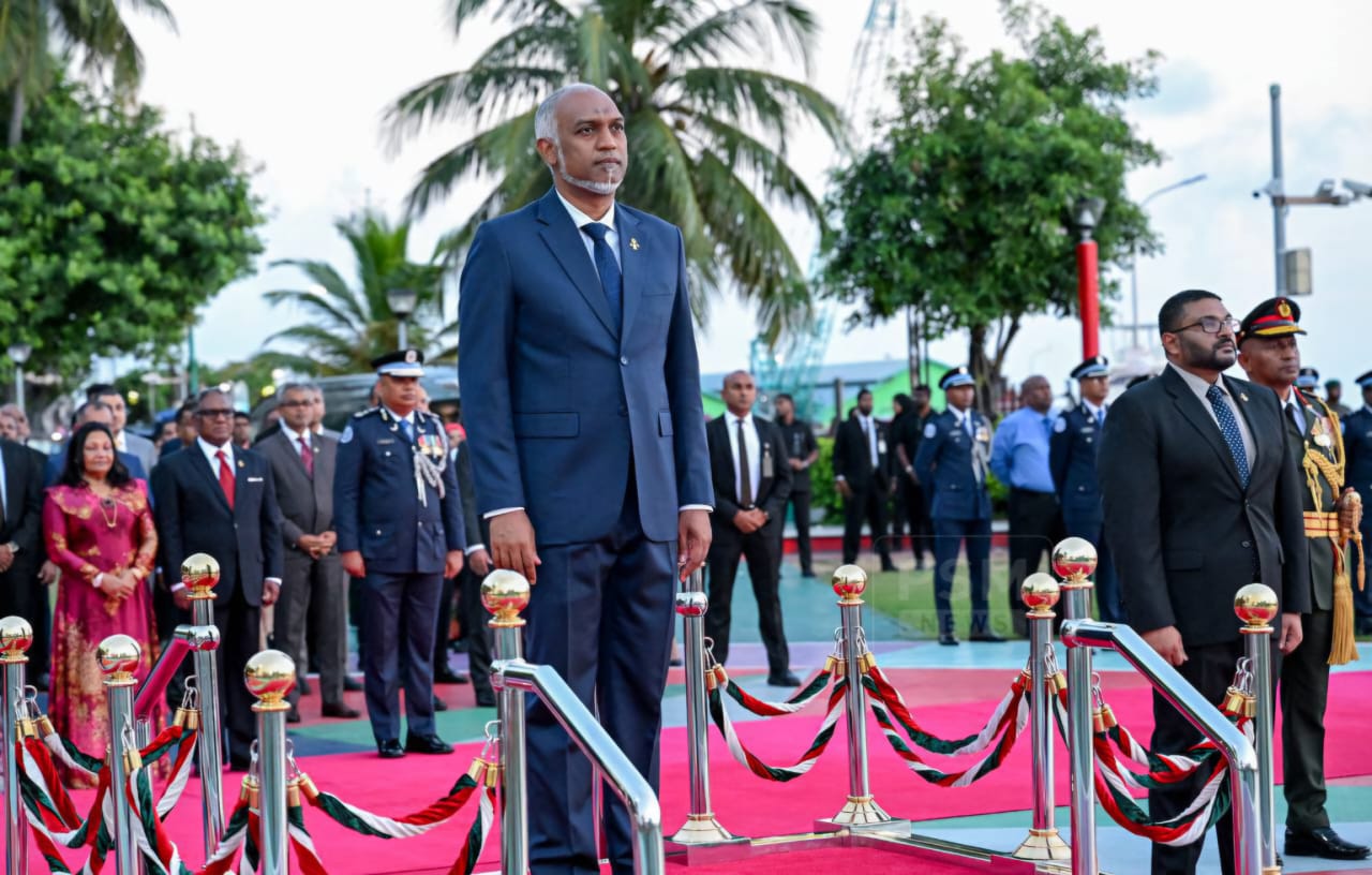 ޤައުމީ ދުވަހުގެ މުނާސަބަތުގައި މިއަދު ހެނދުނު ބޭއްވި ދިދަ ނެގުމުގެ ރަސްމިއްޔާތުގައި ރައީސުލްޖުމްހޫރިއްޔާ ޑރ. މުޙައްމަދު މުޢިއްޒުއާއި އެމަނިކުފާނުގެ އަނބިކަނބަލުން މެޑަމް ސާޖިދާ މުޙައްމަދު ބައިވެރިވެވަޑައިގެންފިއެވެ.