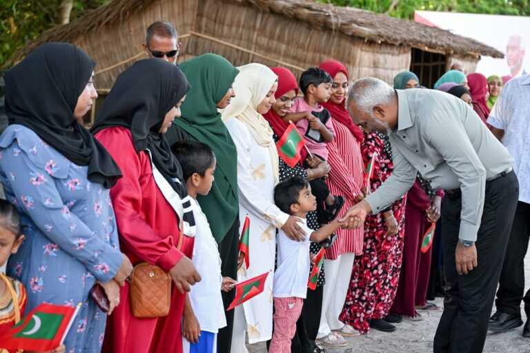 ރައީސް ވަޑައިގެންނެވުމުން އެމަނިކުފާނަށް މަރުޙަބާ ދެންނެވުމަށް ރަށުގެ މުއައްސަސާތަކުގެ އިސްވެރިންނާއި ގިނަ އަދަދެއްގެ ރައްޔިތުން ބަނދަރު ސަރަހައްދަށް ޖަމާވެފައިވެއެވެ.