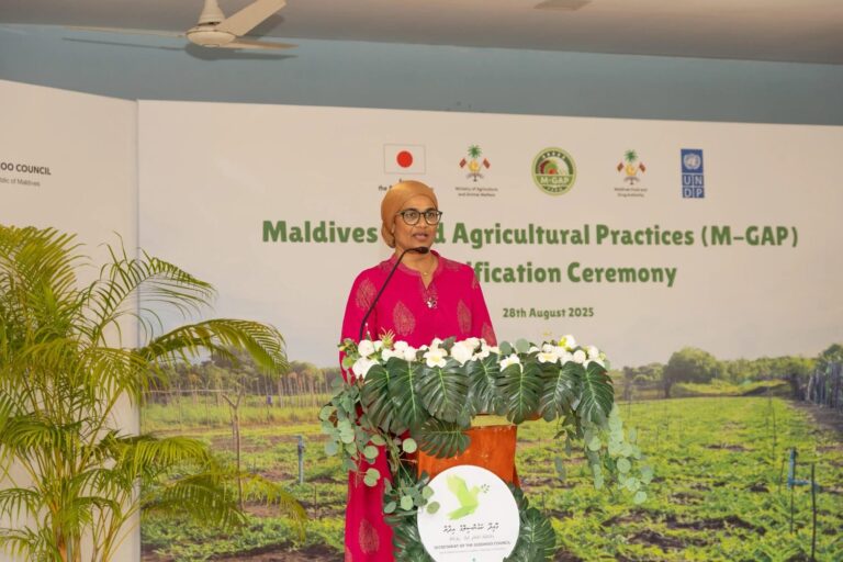ގޮއިދޫގެ ދަނޑުވެރިންނަށް މޯލްޑިވްސް ގުޑް އެގްރިކަލްޗަރަލް ޕްރެކްޓިސަސް(އެމްގެޕް) ސެޓްފިކެޓް ހަވާލުކުރުމުގެ ރަސްމިއްޔާތުގައި ވާހަކަދައްކަވަމުން ދަނޑުވެރިކަމާއި ދިރޭތަކެއްޗާއި ބެހޭ މިނިސްޓަރު ޑރ. މަރްޔަމް މާރިޔާ ވިދާޅުވީ (އެމްގެޕް) ސެޓްފިކެޓަކީ ދަނޑުވެރިންގެ ހުނަރުވެރިކަމާއި ފެންވަރު މަތިކޮށް، ދިވެހިރާއްޖޭގެ ދަނޑުވެރިކަން ކުރިއެރުވުމަށް އެޅޭ މުހިންމު ފިޔަވަޅެއްޅެއް ކަމަށެވެ.