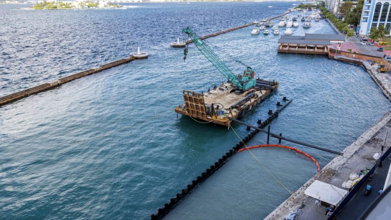 އެމްޓީސީސީން ބުނީ، މަޝްރޫޢުގެ ފުރަތަމަ ބައިގައި ހިމެނޭ ކީވޯލް ކެޕިންގ ތަޅާލުމުގެ މަސައްކަތްވެސް ނިމިފައިވާ ކަމަށާއި، މަގު ފުޅާކުރުމަށާއި އާ ކީވޯލް ހެދުމަށް ބޭނުންވާ ސަރަހައްދު ހިއްކުމުގެ މަސައްކަތްވެސް ދަނީ ކުރިއަށް ކަމަށެވެ.