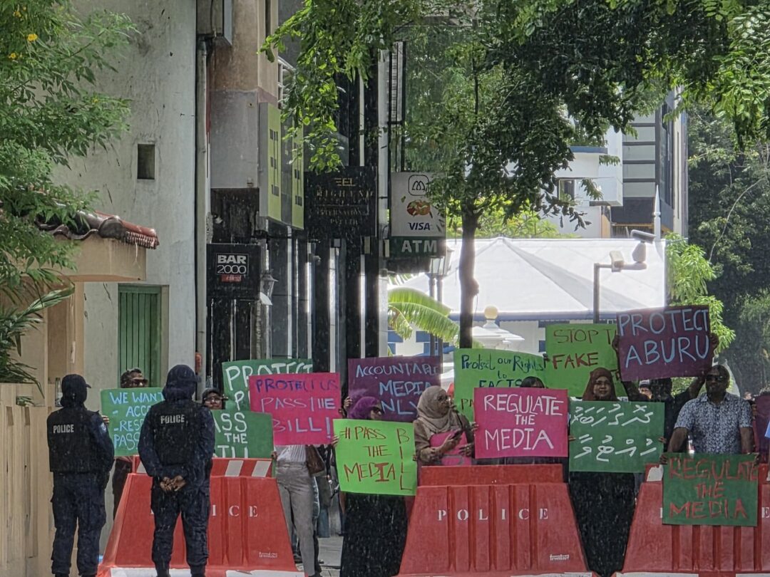 މީޑިއާ ރެގިއުލޭޓް ކުރުމުގެ ބިލް ފާސްނުކޮށް ބޭރު ކޮށްލުމަށް ގިނަ އަދަދެއްގެ ނޫސްވެރިންނާއި އިދިކޮޅު ފަރާތްތަކުގެ އިތުރުން ބައެއް އާންމުންވެސް ގޮވާލަމުންދާއިރު، ނޫސްވެރިންގެ މުޒާހަރާގެ އަނެއް ފަޅީގައި ސަރުކާރަށް ތާއީދުކުރާ ޕީއެންސީގެ އެކްޓިވިސްޓުންވެސް މިހާރު ވަނީ އިހުތިޖާޖު ކުރަން ފަށާފައެވެ.