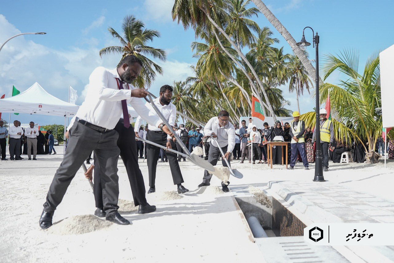 އެ ރަށު މަގުތައް ތަރައްޤީ ކުރުމުގެ އަމަލީ މަސައްކަތް ފައްޓަވައިދެއްވީ މިނިސްޓަރ އޮފް ކޮންސްޓްރަކްޝަން، ހައުސިންގ އެންޑް އިންފްރާސްޓްރަކްޗަރ ޑރ. ޢަބްދުﷲ މުއްޠަލިބް އެވެ.