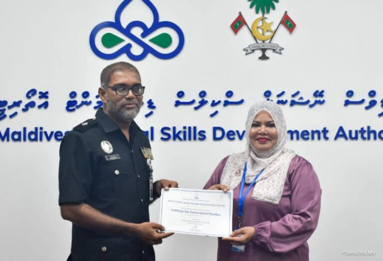 އިންސްޓިޓިއުޓް ރަޖިސްޓްރޭޝަން ސެޓުފިކެޓު ހަވާލުކުރުމަށް މޯލްޑިވްސް ނޭޝަނަލް ސްކިލްސް ޑިވެލޮޕްމަންޓްގައި ބޭއްވި ރަސްމިއްޔާތުގައި ސެޓްފިކެޓް ހަވާލުކޮށްދެއްވީ އެމްއެންއެސްޑީއޭގެ ޗީފް އެގްޒެކެޓިވް އޮފިސަރ ޑރ. ޒަހުރާ މުޙައްމަދެވެ. އިންސްޓިޓިއުޓް ފޮރ ކަރެކްޝަނަލް ސްޓަޑިޒްގެ ފަރާތުން ސެޓުފިކެޓާއި ހަވާލުވެލެއްވީ ސްޕްރިންޓެންޑެންޓް އިބްރާހީމް ނާޝިދެވެ.