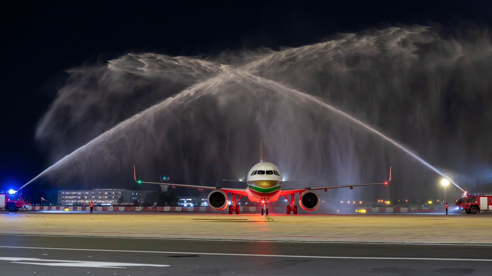 އަދި ޓާމިނަލް 1 އަށް ކައިރި ކުރި ގަލްފް އެއާރގެ ފުރަތަމަ މަތިންދާބޯޓު، GF145 އަށް މަރުހަބާ ކިއުމުގެ ގޮތުން ހާއްސަ ވޯޓާ ސެލިއުޓެއް އަރުވައި، އެ ފްލައިޓުން ރާއްޖެ އައި 18 ފަސިންޖަރުންނަށް ވަނީ ސަގާފީ ހަރަކާތްތަކާއެކު ހޫނު މަރުހަބާއެއް ކިޔައިފައި ކަމަށްވެސް އެމްއޭސީއެލުން ބުނެފައިވެއެވެ.