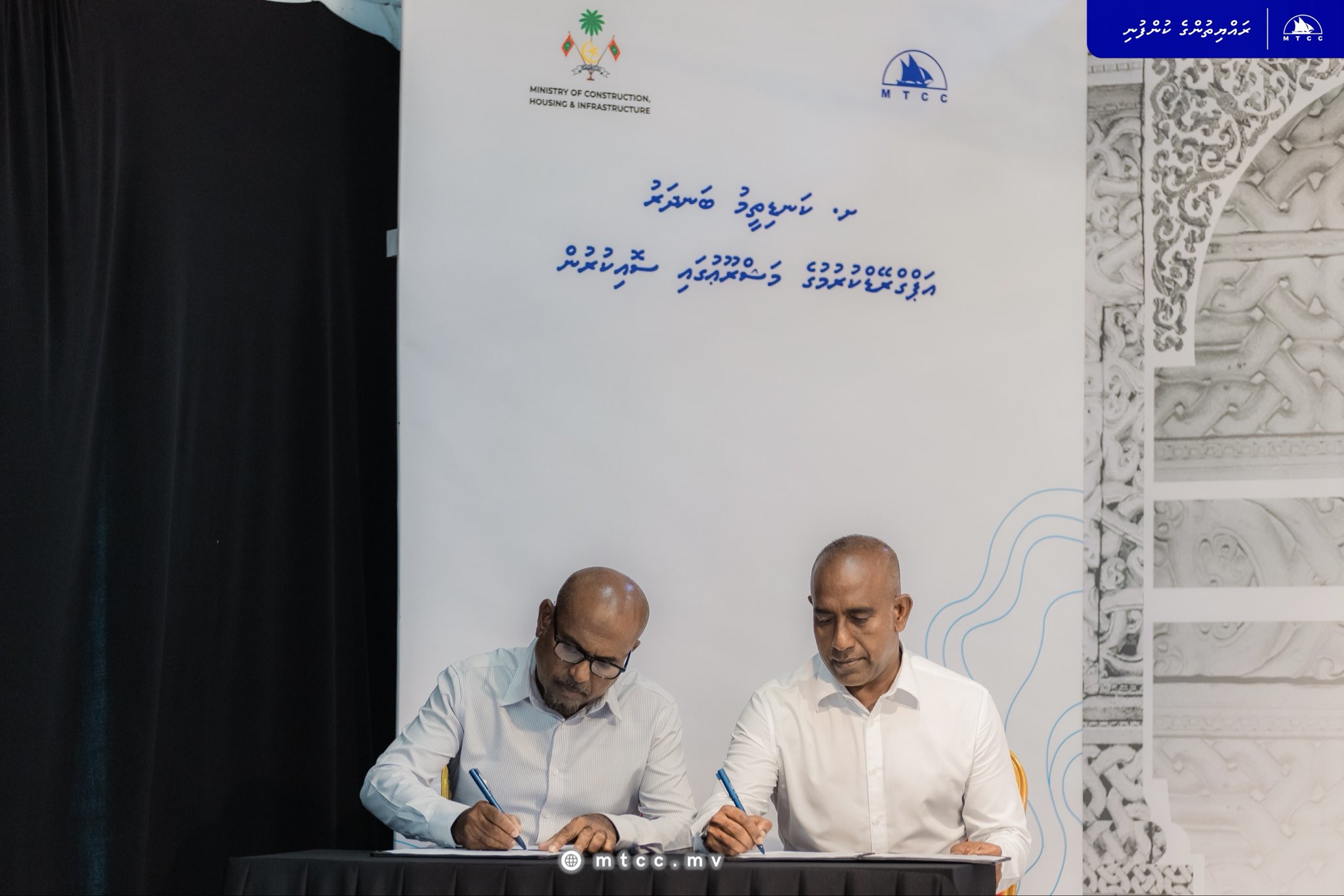 84.12 މިލިއަން ރުފިޔާގެ މި މަޝްރޫޢުގެ އެއްބަސްވުމުގައި ސަރުކާރުގެ ފަރާތުން ސޮއިކުރެއްވީ ކޮންސްޓްރަކްޝަން މިނިސްޓަރު ސްޓޭޓް މިނިސްޓަރ ހަސަން ރަޝީދެވެ. އަދި އެމްޓީސީސީގެ ފަރާތުން ސޮއިކުރެއްވީ އެ ކުންފުނީގެ މެނޭޖިން ޑިރެކްޓަރ އަހްމަދު ސައުދީއެވެ.