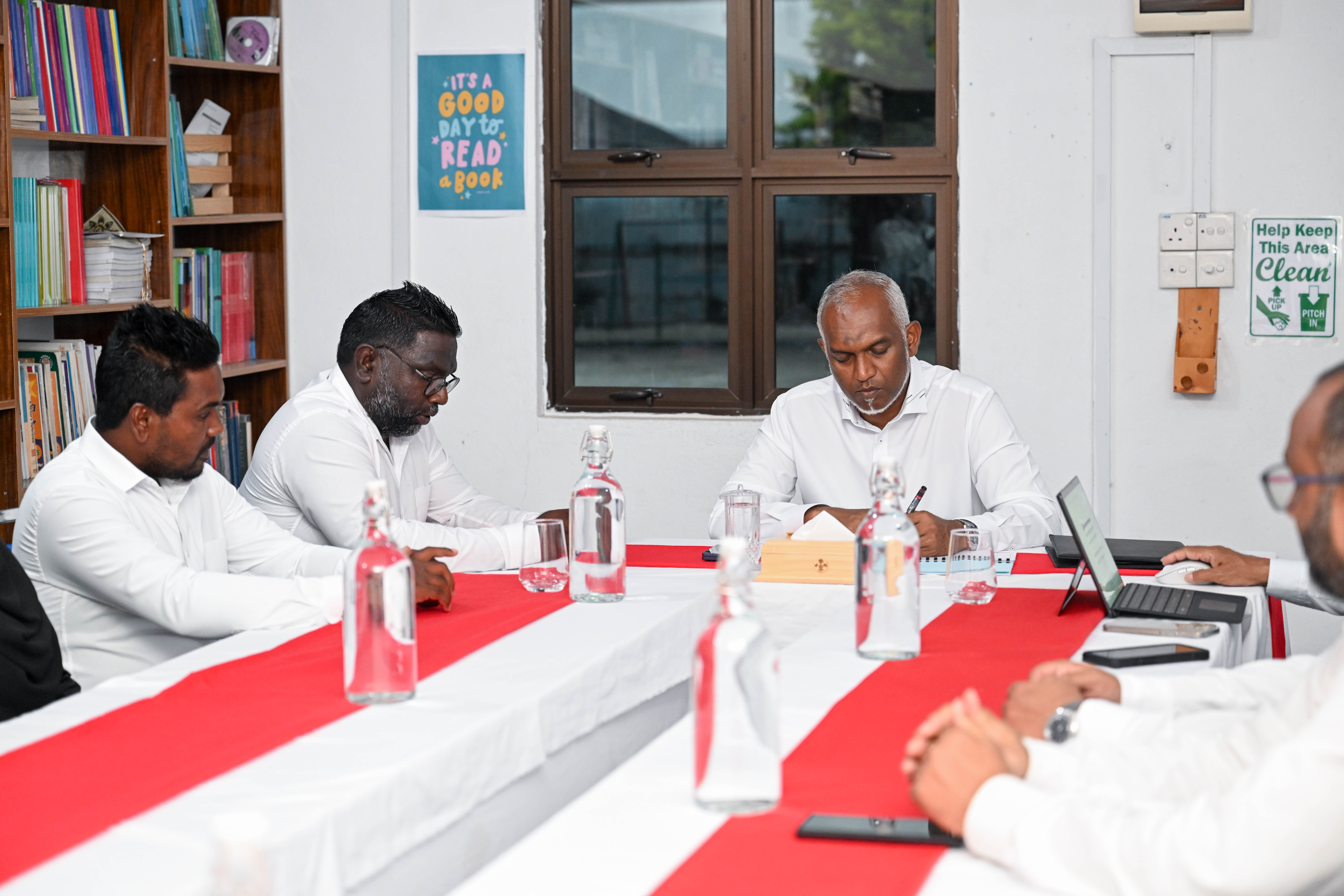 ބިލެއްްފަހީ ކައުންސިލުން އެ ކަންކަން ރައީސް މުޢިއްޒުއާ ހިއްސާކުރައްވާފައި ވަނީ މިއަދު ބިލެތްފަހި ސްކޫލްގައި އެ ރަށު ކައުންސިލާއި، އ.ތ.މ. ކޮމިޓީ އަދި އެ ރަށުގެ ބައެއް މުއައްސަސާތަކުގެ އިސްވެރިންނާއެކު ރައީސް ބޭއްވި ބައްދަލުކުރެއްވުމުގައެވެ.